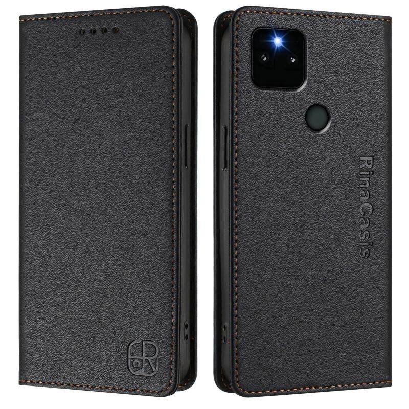 For Google Pixel 5a RC01 Dual-Folded Magnetic Suction RFID Leather Phone Case(Black)