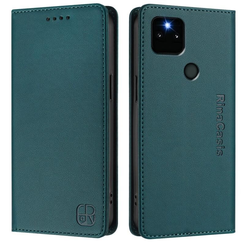 For Google Pixel 5a RC01 Dual-Folded Magnetic Suction RFID Leather Phone Case(Dark Green)