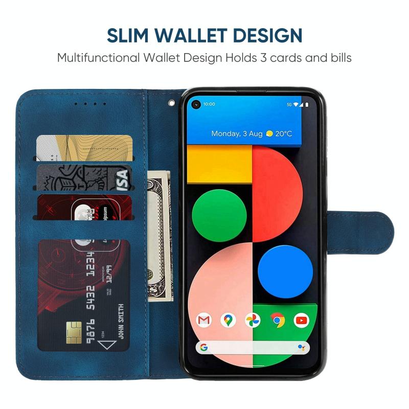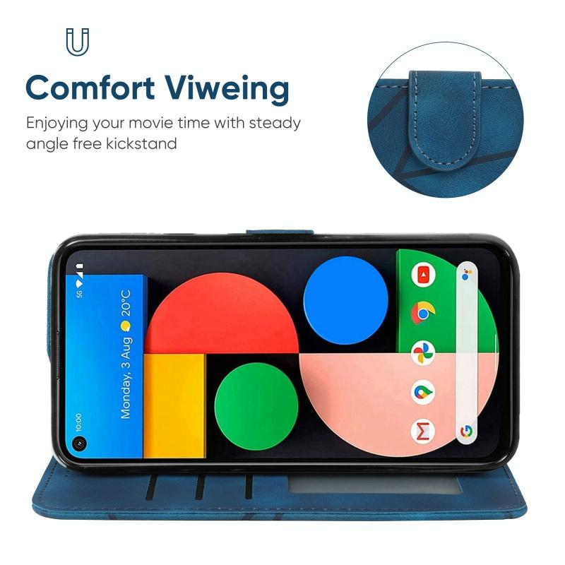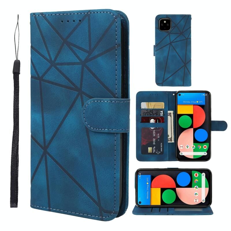 For Google Pixel 5a Skin Feel Geometric Lines Leather Phone Case(Blue)