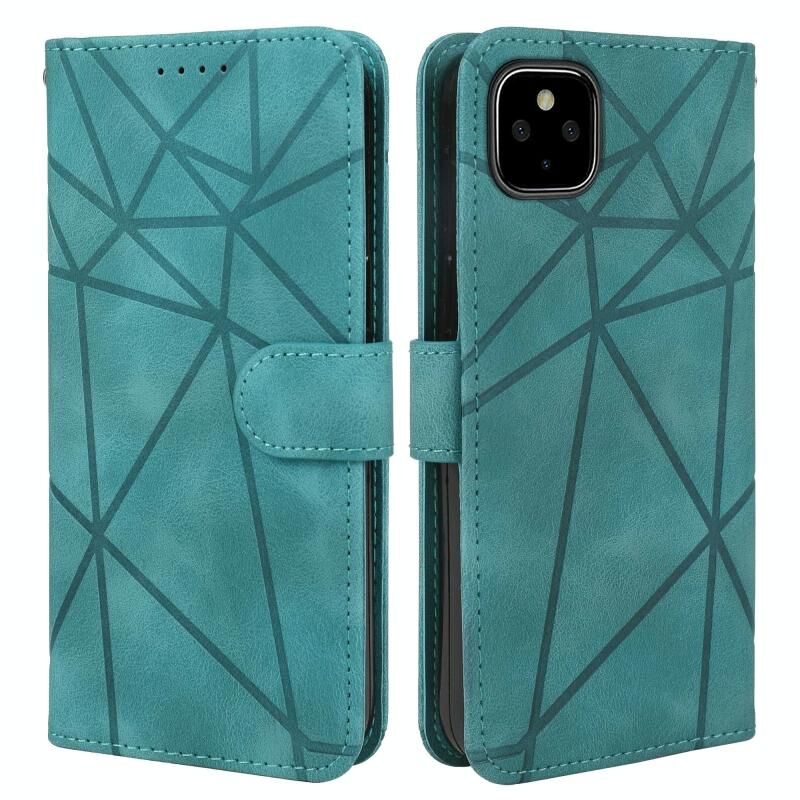 Για το Google Pixel 5a Skin Feel Γεωμετρικές γραμμές δερμάτινη θήκη τηλεφώνου (πράσινο)