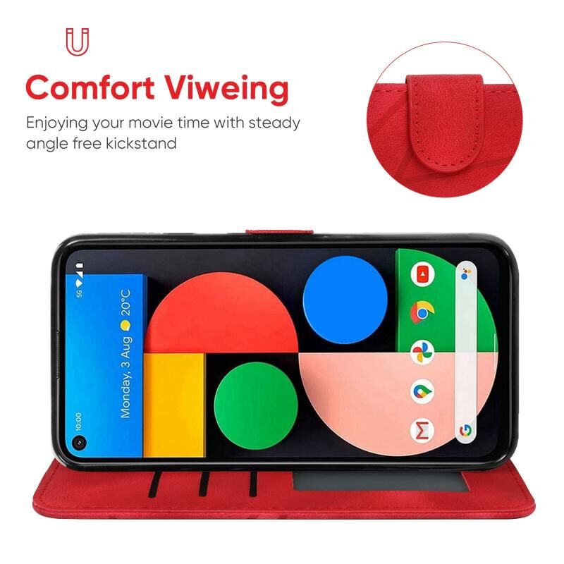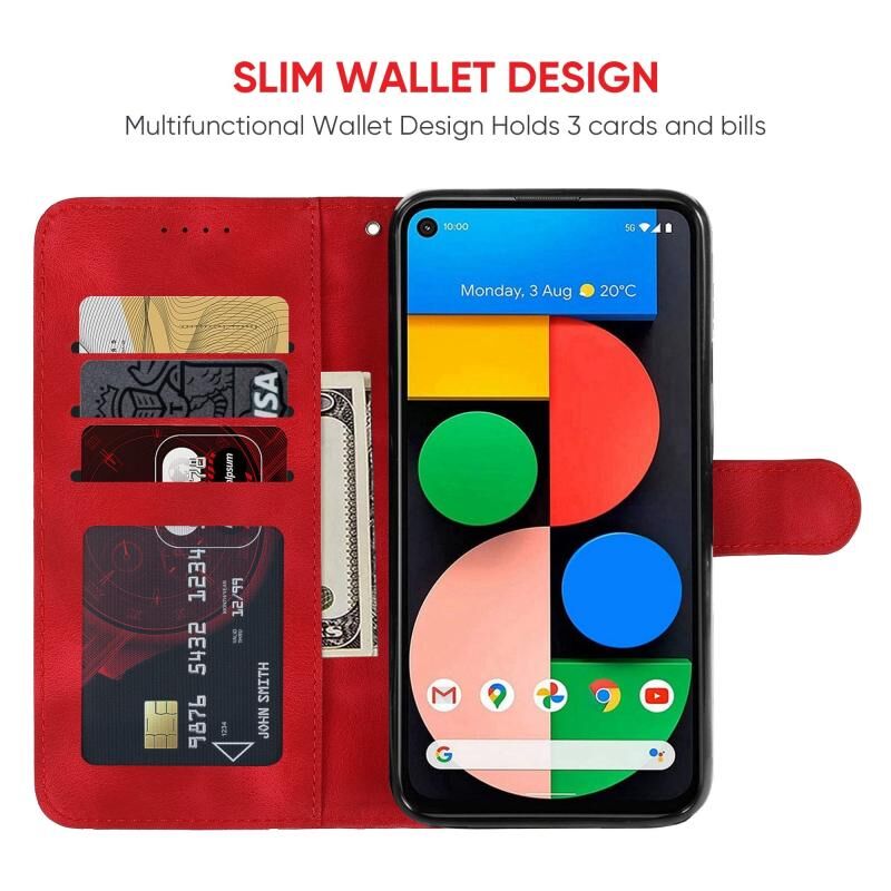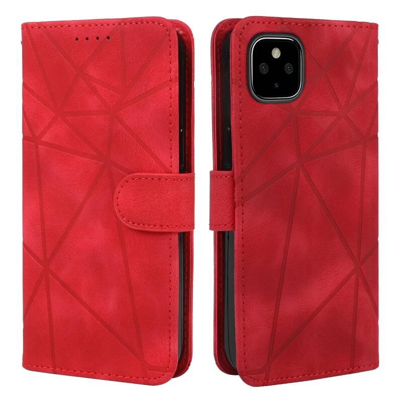 Για το Google Pixel 5a Skin Feel Γεωμετρικές γραμμές δερμάτινη θήκη τηλεφώνου (κόκκινο)