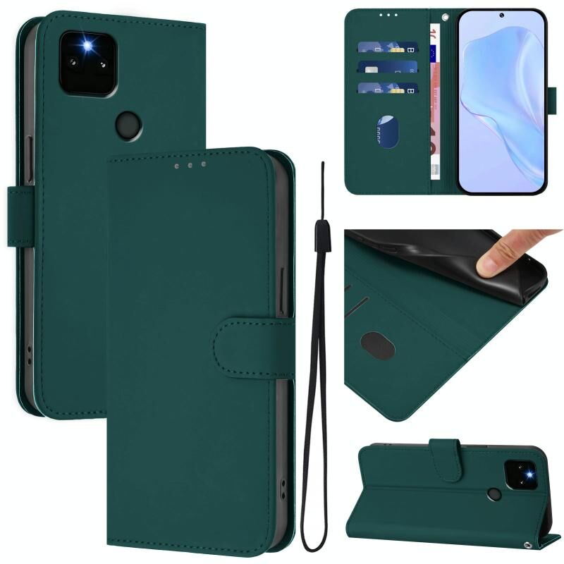 Για το Google Pixel 5a Skin Feel Solid Color Δερμάτινη θήκη τηλεφώνου με κορδόνι (σκούρο πράσινο)