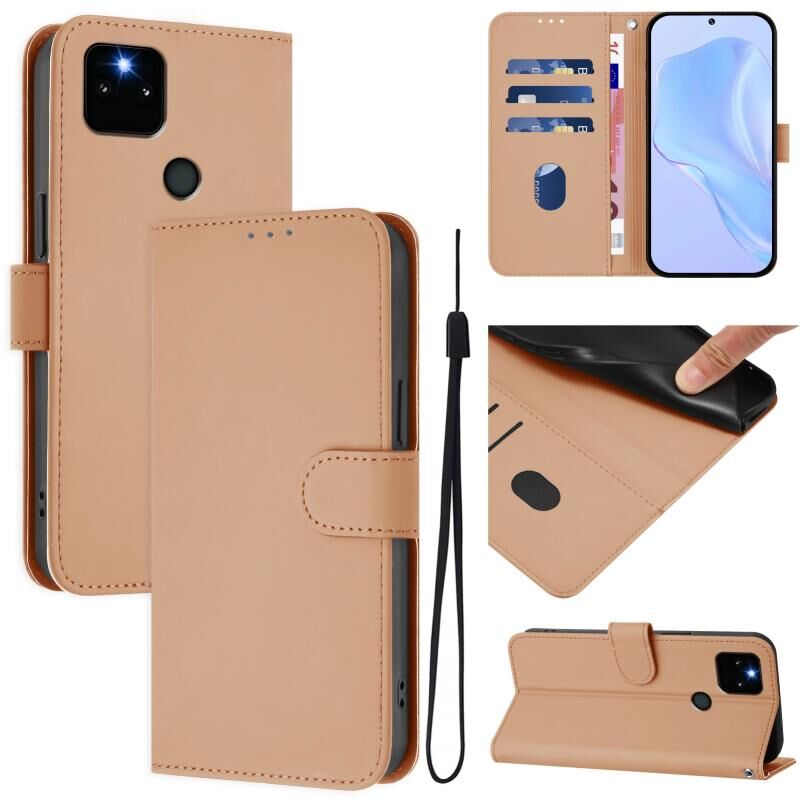Για το Google Pixel 5a Skin Feel Solid Color Δερμάτινη θήκη τηλεφώνου με κορδόνι (Nude)