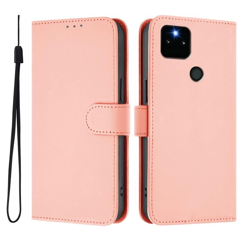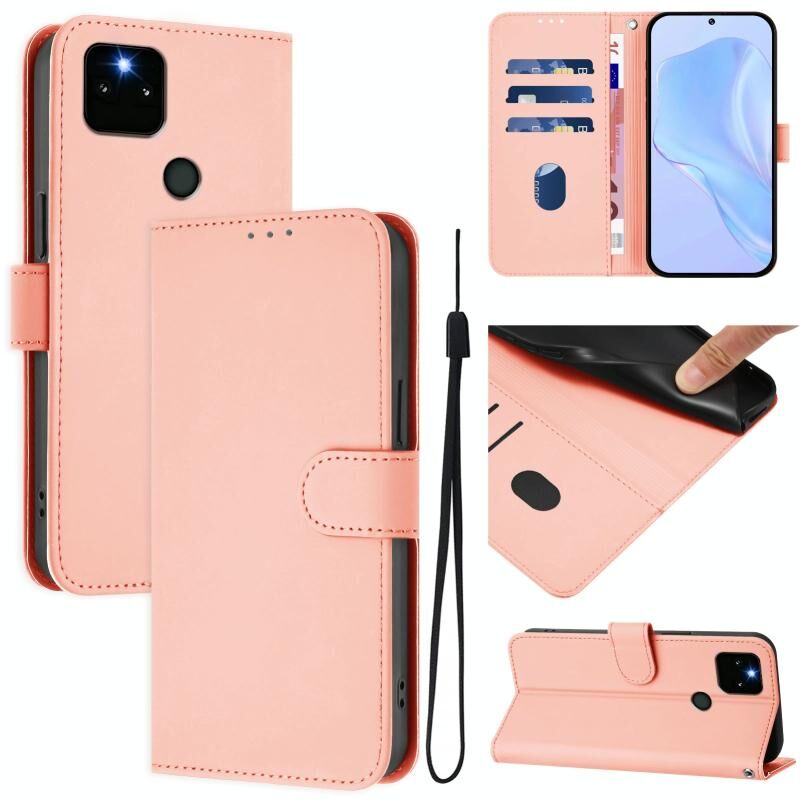 Για το Google Pixel 5a Skin Feel Solid Color Δερμάτινη θήκη τηλεφώνου με κορδόνι (ροζ)