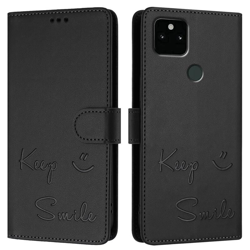 Για το Google Pixel 5a Χαμόγελο ανάγλυφο RFID δερμάτινη θήκη τηλεφώνου (Μαύρο)