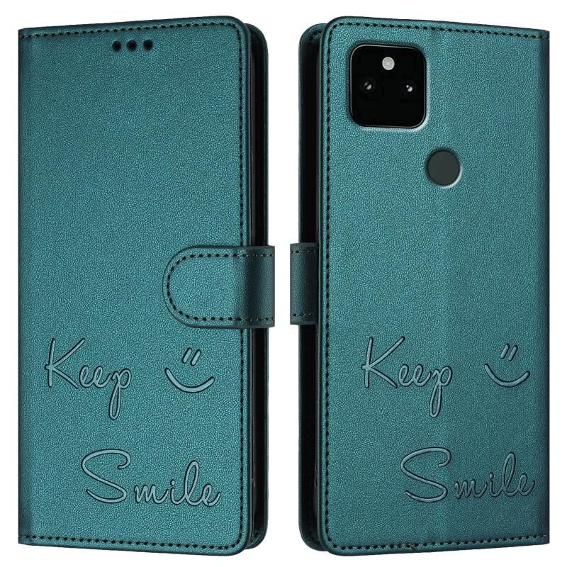Για Google Pixel 5a Χαμόγελο ανάγλυφο RFID δερμάτινη θήκη τηλεφώνου (Πράσινο παγώνι)