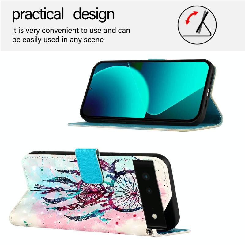 Θήκη τηλεφώνου από δέρμα με οριζόντια αναδίπλωση και τρισδιάστατη ζωγραφική για Google Pixel 6 (Χρώμα: Αέριες καμπάνες)