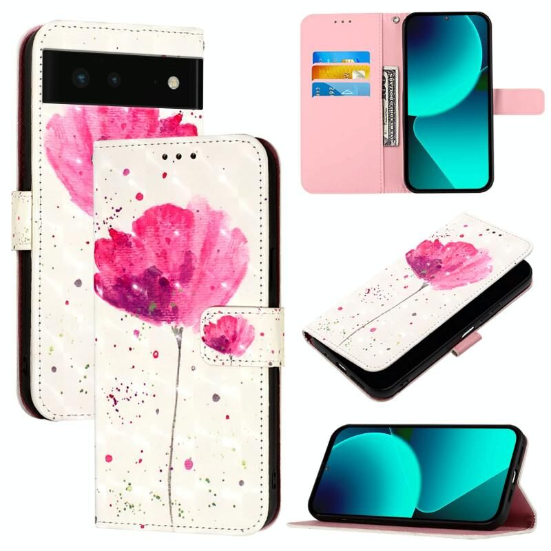 Θήκη τηλεφώνου από δέρμα με οριζόντια αναδίπλωση και τρισδιάστατη ζωγραφική για Google Pixel 6 (Λουλούδι)