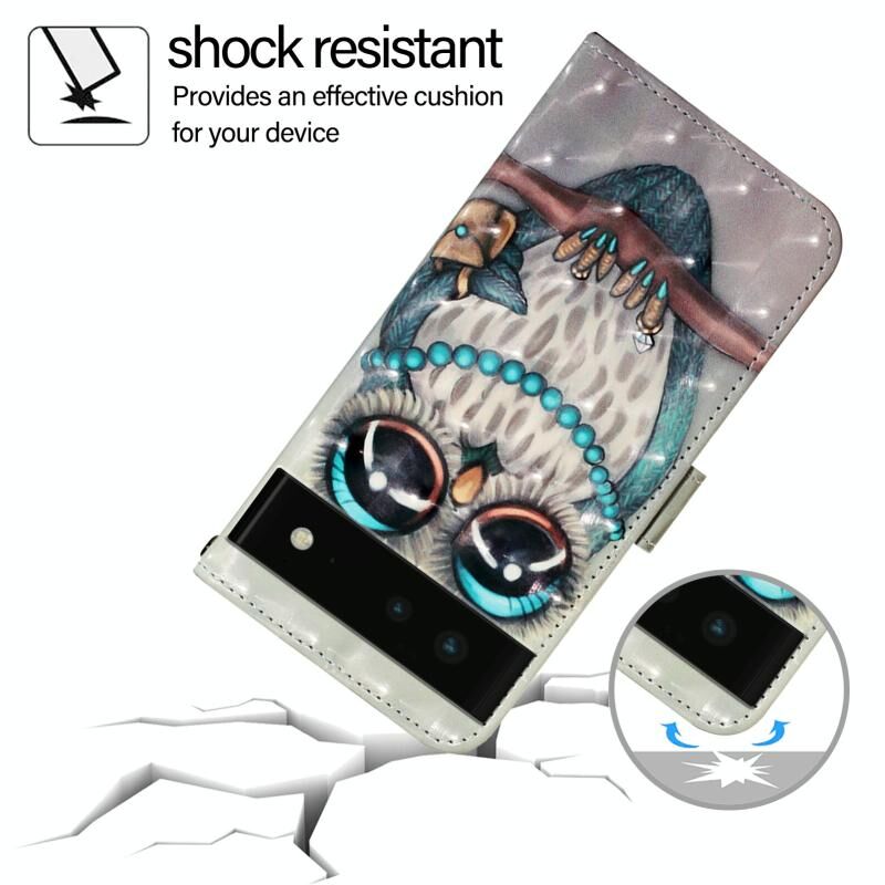 Θήκη τηλεφώνου από δέρμα με οριζόντια αναδίπλωση και τρισδιάστατη ζωγραφική για Google Pixel 6 (Χρυσή Πεταλούδα)