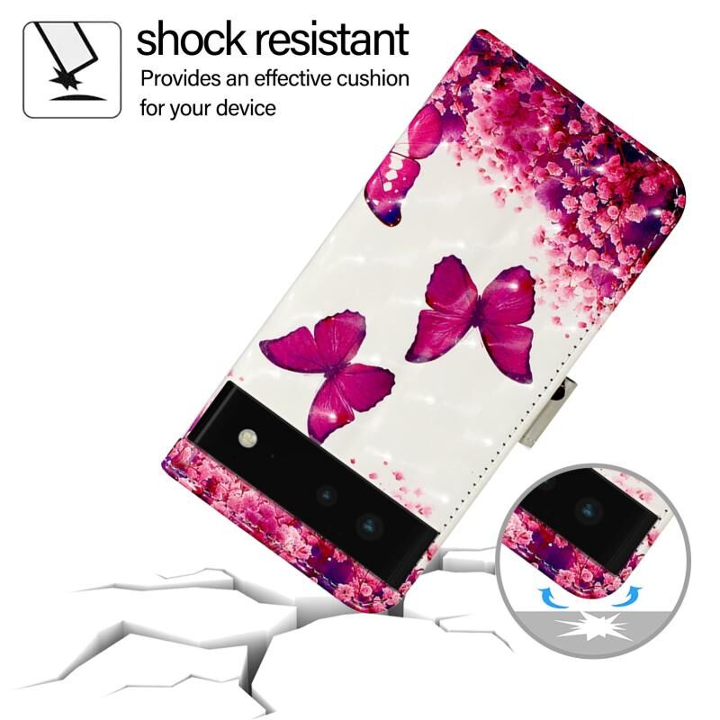 Θήκη τηλεφώνου από δέρμα με οριζόντια αναδίπλωση και τρισδιάστατη ζωγραφική για Google Pixel 6 (Ροζ Πεταλούδα)