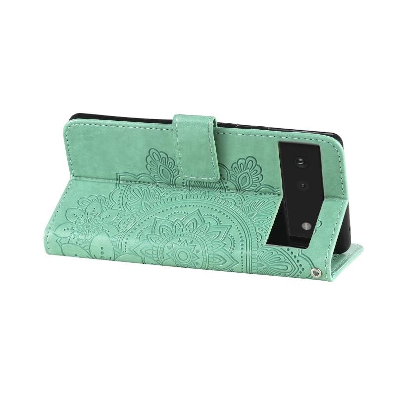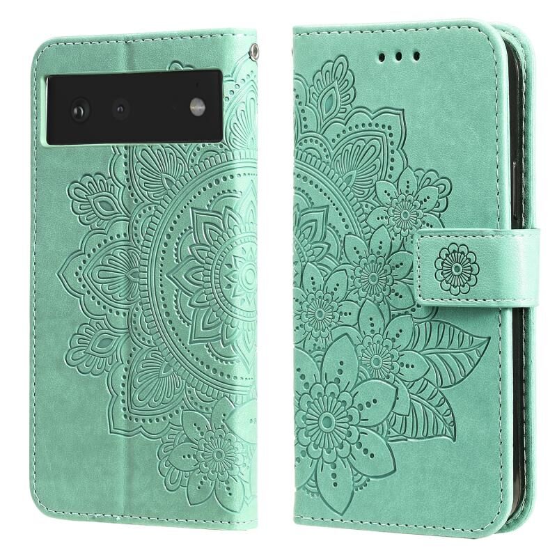 Για το Google Pixel 6 7-πέταλα λουλούδια ανάγλυφο μοτίβο οριζόντια Flip PU δέρμα υπόθεση με θήκη & υποδοχές για κάρτες & πορτοφόλι & πλαίσιο φωτογραφιών (πράσινο)