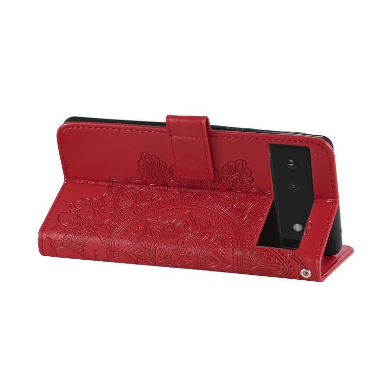 Για το Google Pixel 6 7-πέταλα λουλούδια ανάγλυφο μοτίβο οριζόντια Flip PU δέρμα υπόθεση με θήκη & υποδοχές για κάρτες & πορτοφόλι & πλαίσιο φωτογραφιών (κόκκινο)
