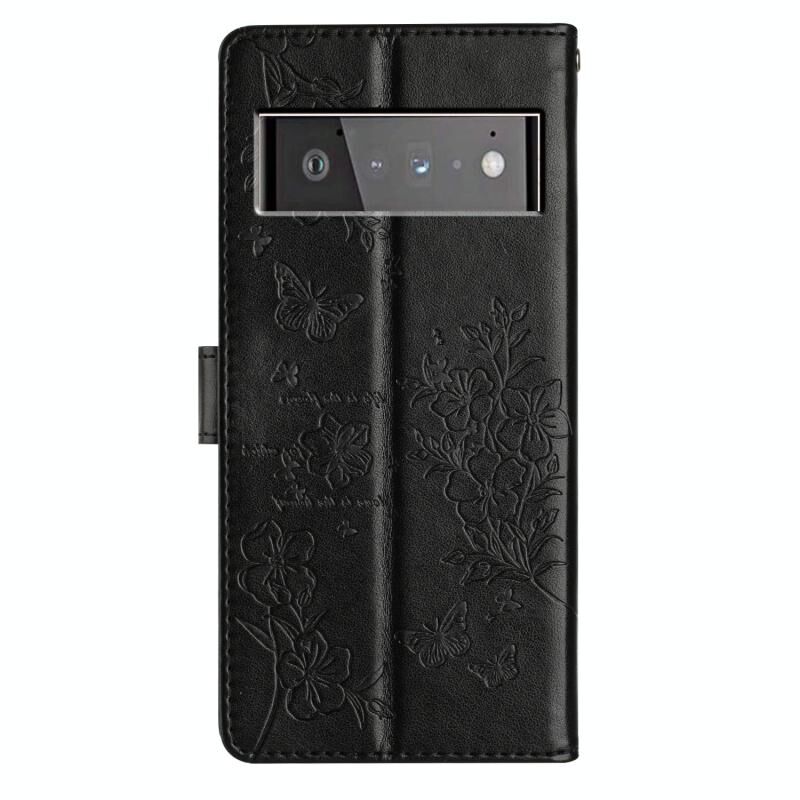 Θήκη τηλεφώνου από δέρμα για Google Pixel 6 Πεταλούδες και Λουλούδια (Χρυσό)