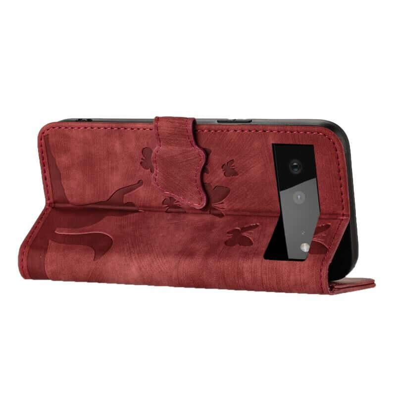 Θήκη τηλεφώνου από δέρμα με ανάγλυφο σχέδιο πεταλούδας και γάτας για Google Pixel 6 (Μωβ)