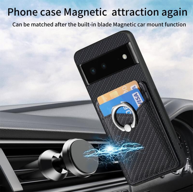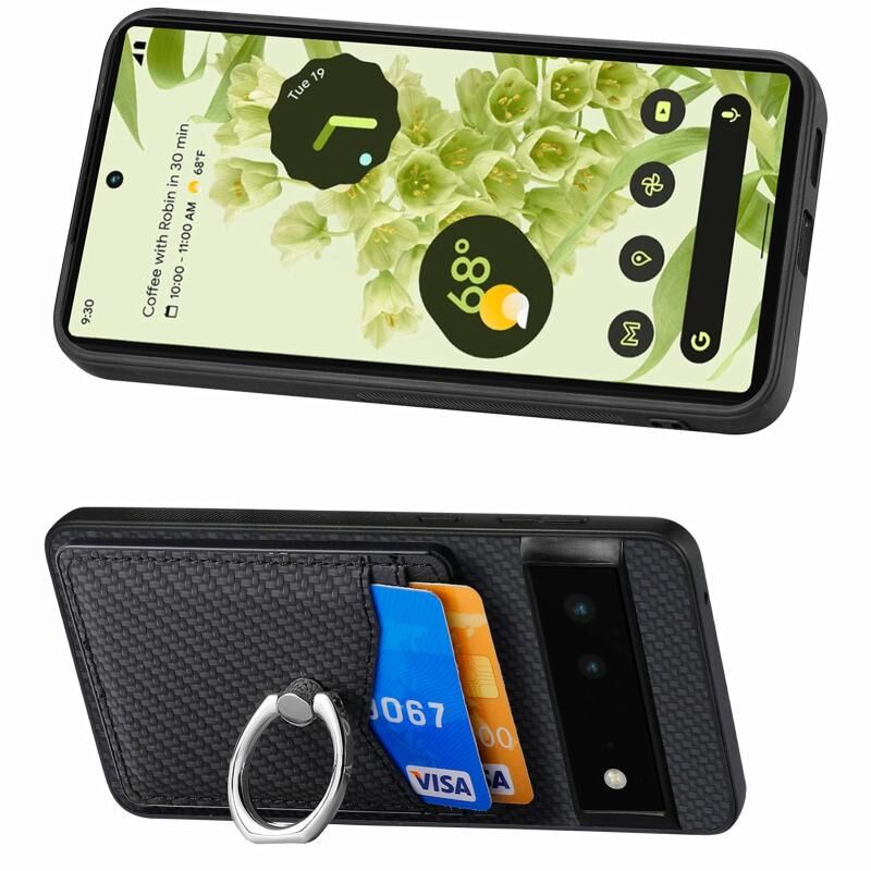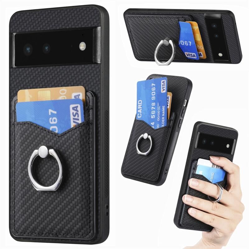 Για το Google Pixel 6 Carbon Fiber κάρτα πορτοφόλι δαχτυλίδι κάτοχος θήκη τηλεφώνου (μαύρο)