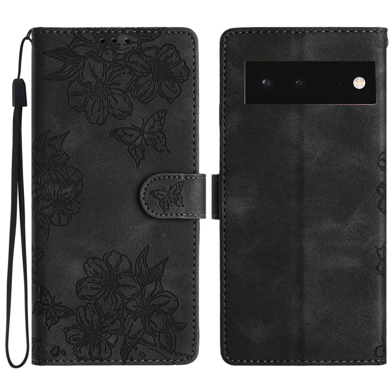 For Google Pixel 6 Cherry Blossom Butterfly Skin Feel Embossed PU Phone Case(Black)