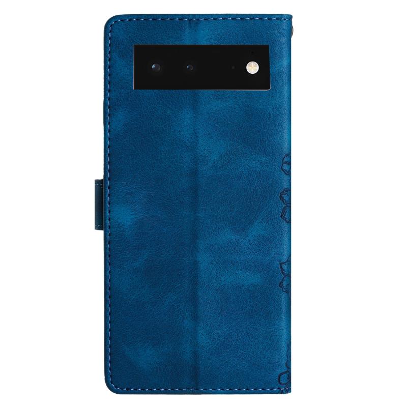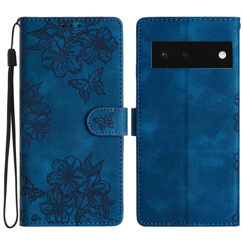 For Google Pixel 6 Cherry Blossom Butterfly Skin Feel Embossed PU Phone Case(Blue)