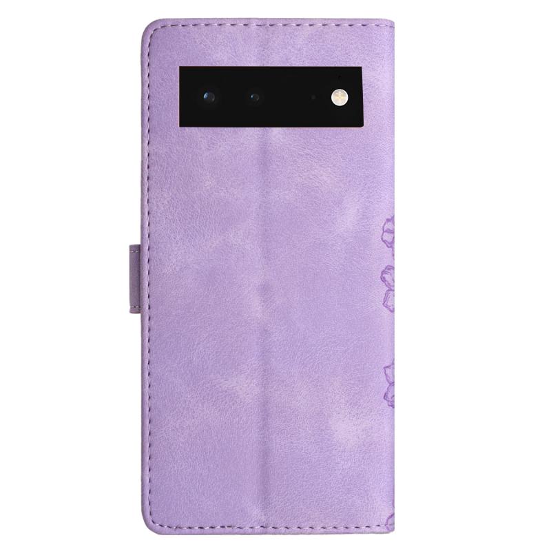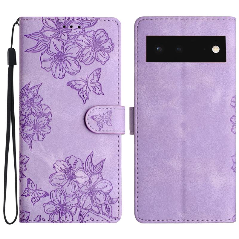 For Google Pixel 6 Cherry Blossom Butterfly Skin Feel Embossed PU Phone Case(Purple)