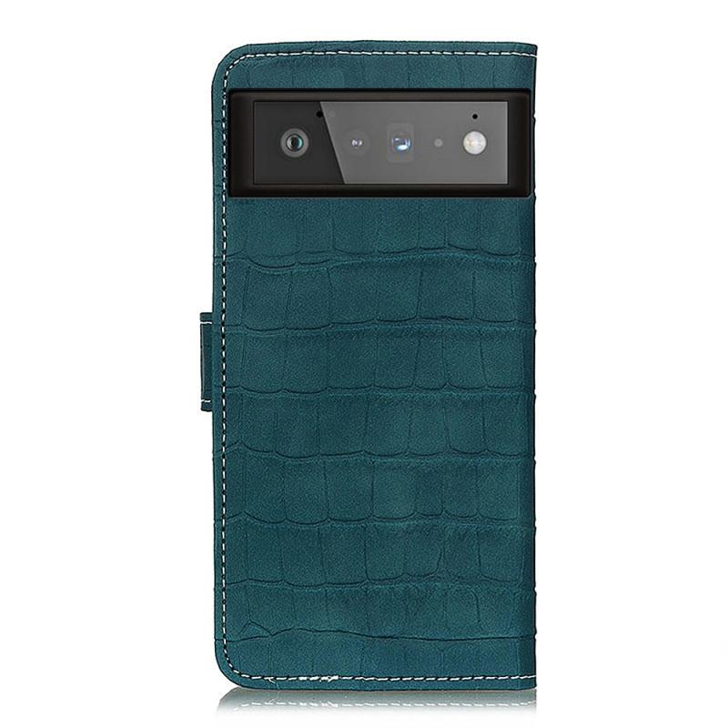 For Google Pixel 6 Crocodile Texture Horizontal Flip Leather Case with Holder & Card Slots & Photo Frame & Wallet(Dark Green)
