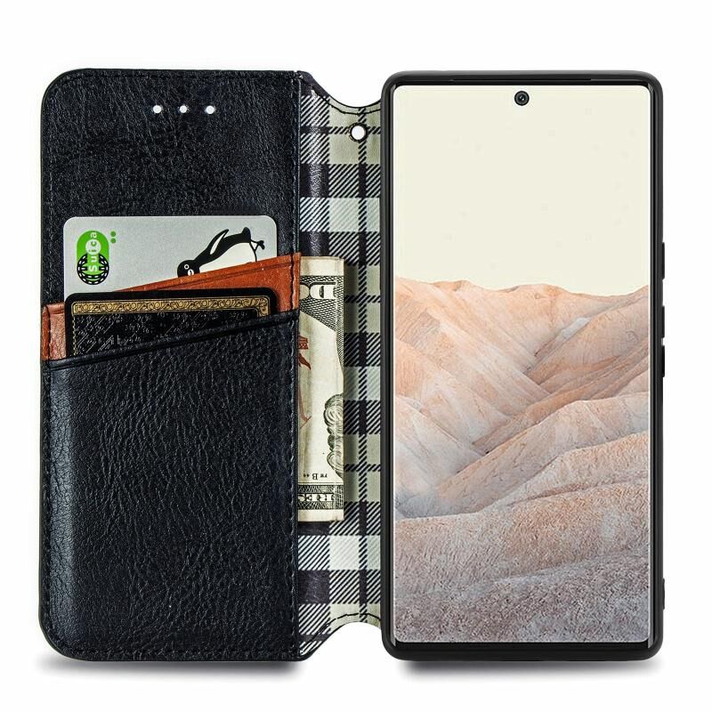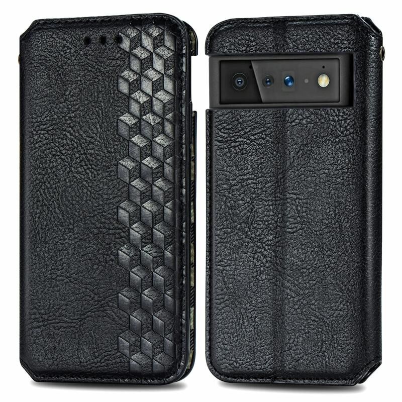 Για το Google Pixel 6 Cubic Grid Pressed Horizontal Flip Μαγνητική δερμάτινη θήκη με θήκη & υποδοχές για κάρτες & πορτοφόλι (Μαύρο)