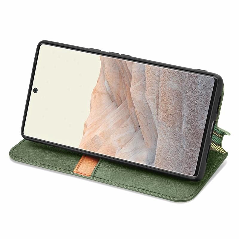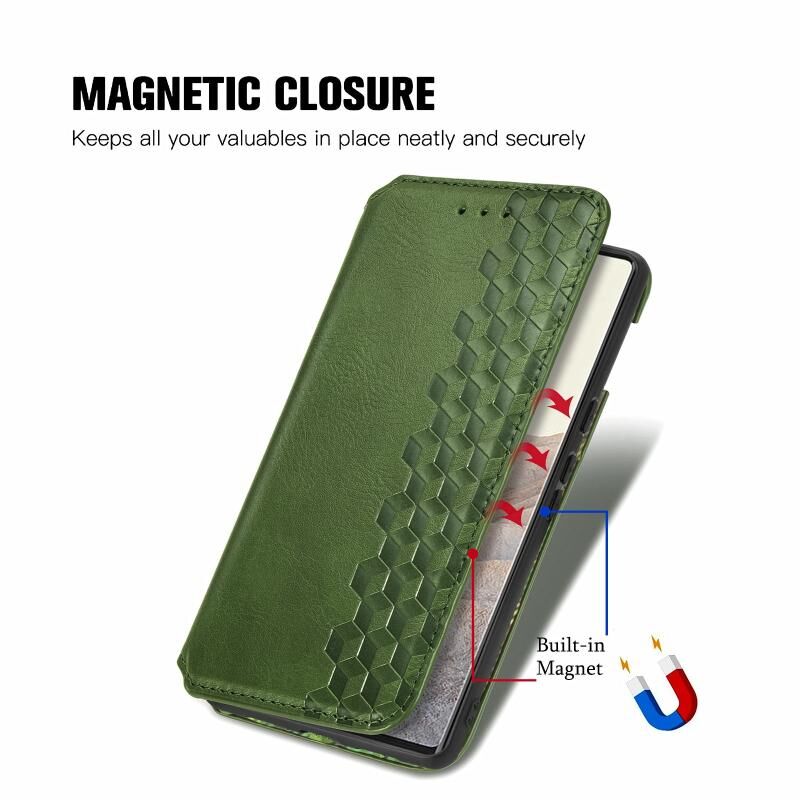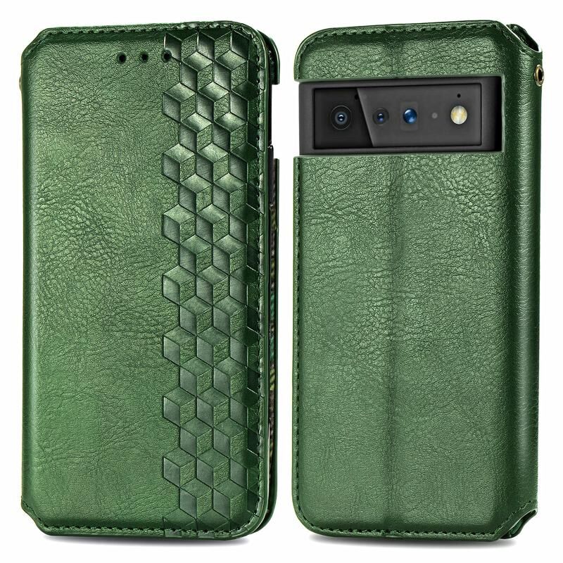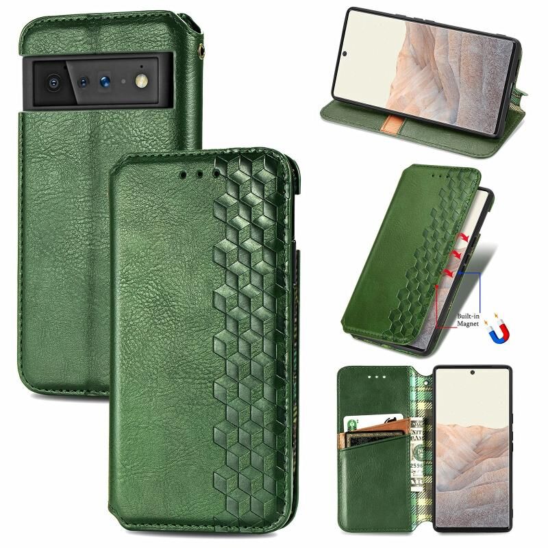 Για το Google Pixel 6 Cubic Grid Pressed Horizontal Flip Μαγνητική δερμάτινη θήκη με θήκη & υποδοχές για κάρτες & πορτοφόλι (πράσινο)