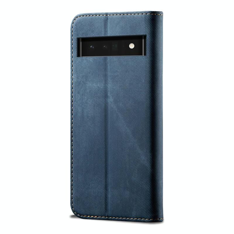 Για το Google Pixel 6 Denim Texture Casual Style Δερμάτινη θήκη τηλεφώνου με θήκη & υποδοχές για κάρτες & πορτοφόλι (μπλε)