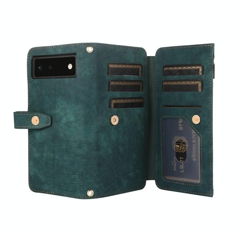 Για το Google Pixel 6 Dream 9-Card πορτοφόλι φερμουάρ τσάντα δερμάτινη θήκη τηλεφώνου (πράσινο)