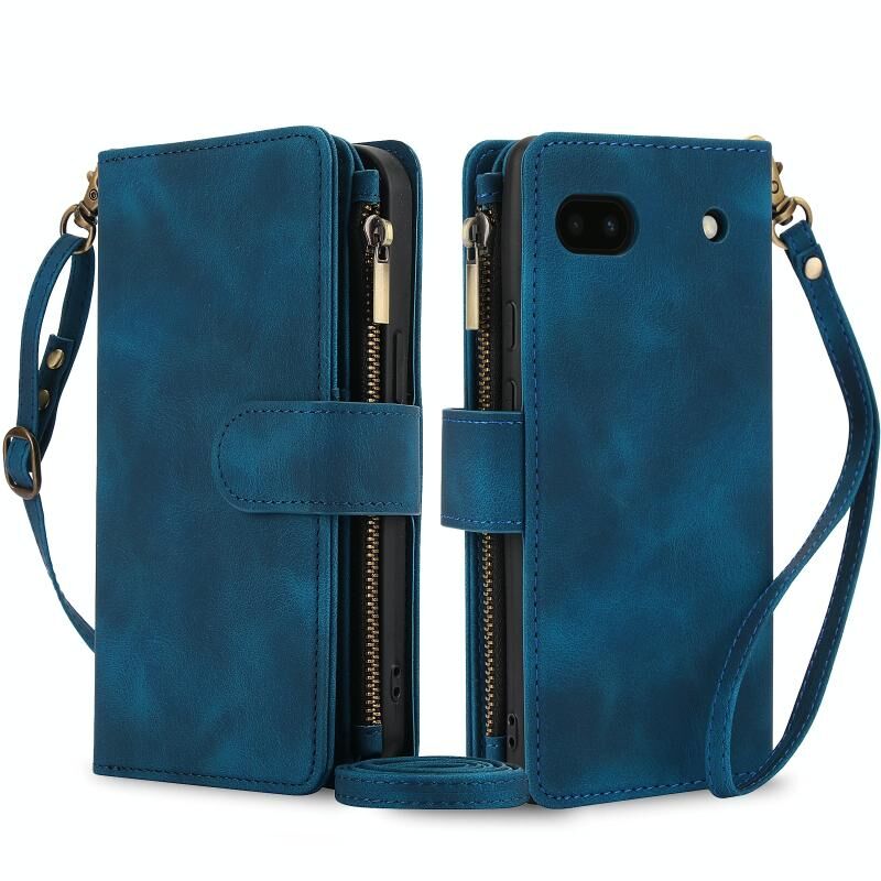 Για Google Pixel 6 Dream 9-Card φερμουάρ πορτοφόλι RFID δερμάτινη θήκη τηλεφώνου με κορδόνι (μπλε)