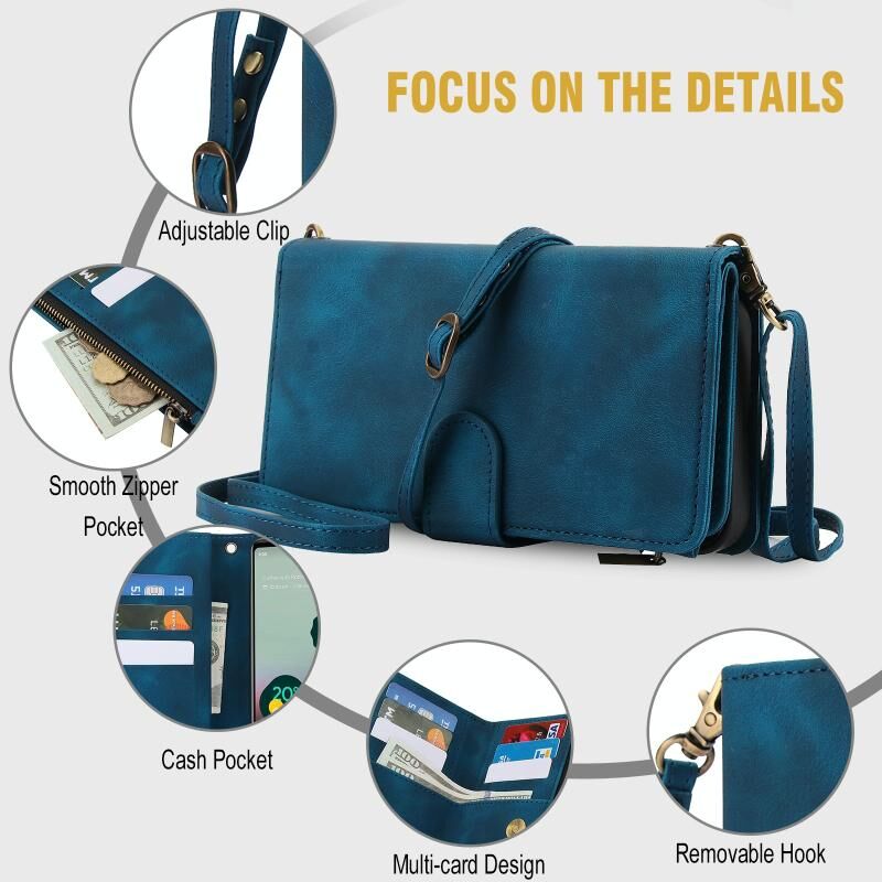 2. Λειτουργία πορτοφολιού πολλαπλών καρτών: 9 υποδοχές για κάρτες και 1 θήκη μετρητών με φερμουάρ για να αποθηκεύετε τις πιστωτικές σας κάρτες, μετρητά ή μικρά χαρτονομίσματα για τις καθημερινές σας ανάγκες.