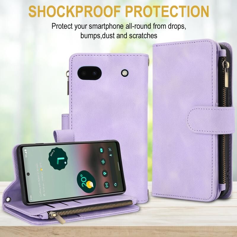 Για Google Pixel 6 Dream 9-Card φερμουάρ πορτοφόλι RFID δερμάτινη θήκη τηλεφώνου με κορδόνι (μωβ)