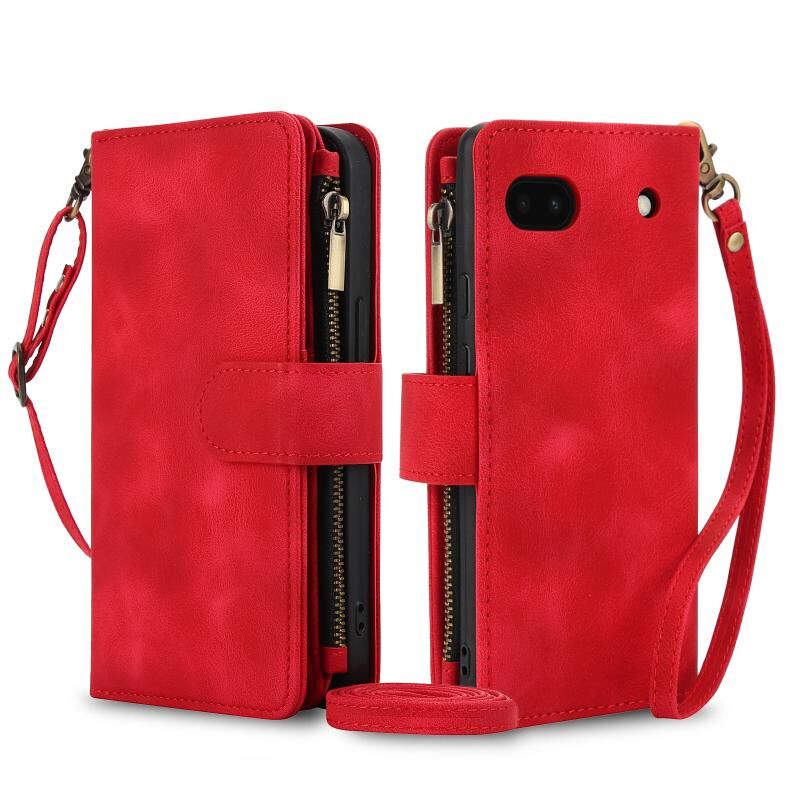 Για Google Pixel 6 Dream 9-Card φερμουάρ πορτοφόλι RFID δερμάτινη θήκη τηλεφώνου με κορδόνι (κόκκινο)