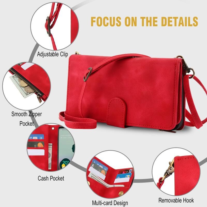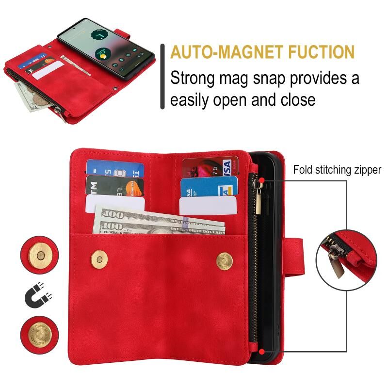 2. Λειτουργία πορτοφολιού πολλαπλών καρτών: 9 υποδοχές για κάρτες και 1 θήκη μετρητών με φερμουάρ για να αποθηκεύετε τις πιστωτικές σας κάρτες, μετρητά ή μικρά χαρτονομίσματα για τις καθημερινές σας ανάγκες.