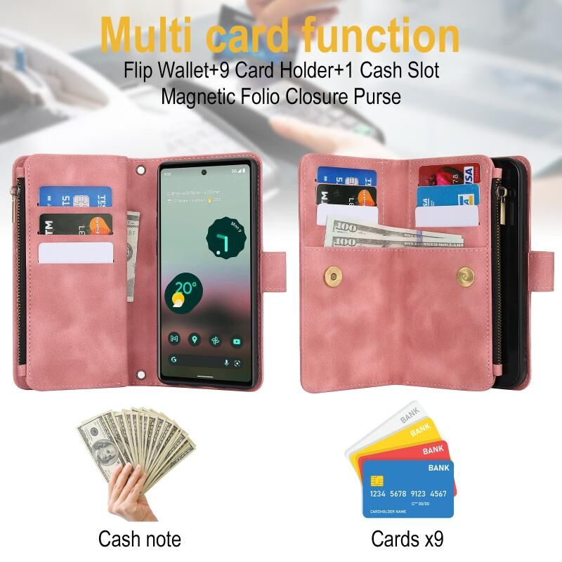 2. Λειτουργία πορτοφολιού πολλαπλών καρτών: 9 υποδοχές για κάρτες και 1 θήκη μετρητών με φερμουάρ για να αποθηκεύετε τις πιστωτικές σας κάρτες, μετρητά ή μικρά χαρτονομίσματα για τις καθημερινές σας ανάγκες.