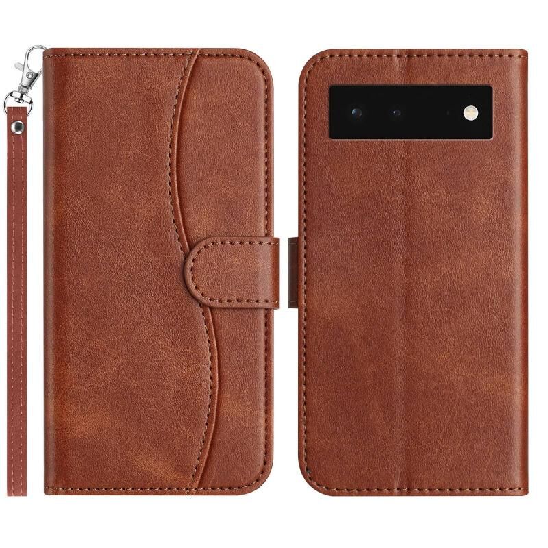 For Google Pixel 6 Dual-Folded S-shape Leather Phone Case(Coffee)