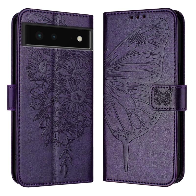 For Google Pixel 6 Embossed Butterfly Leather Phone Case(Dark Purple)