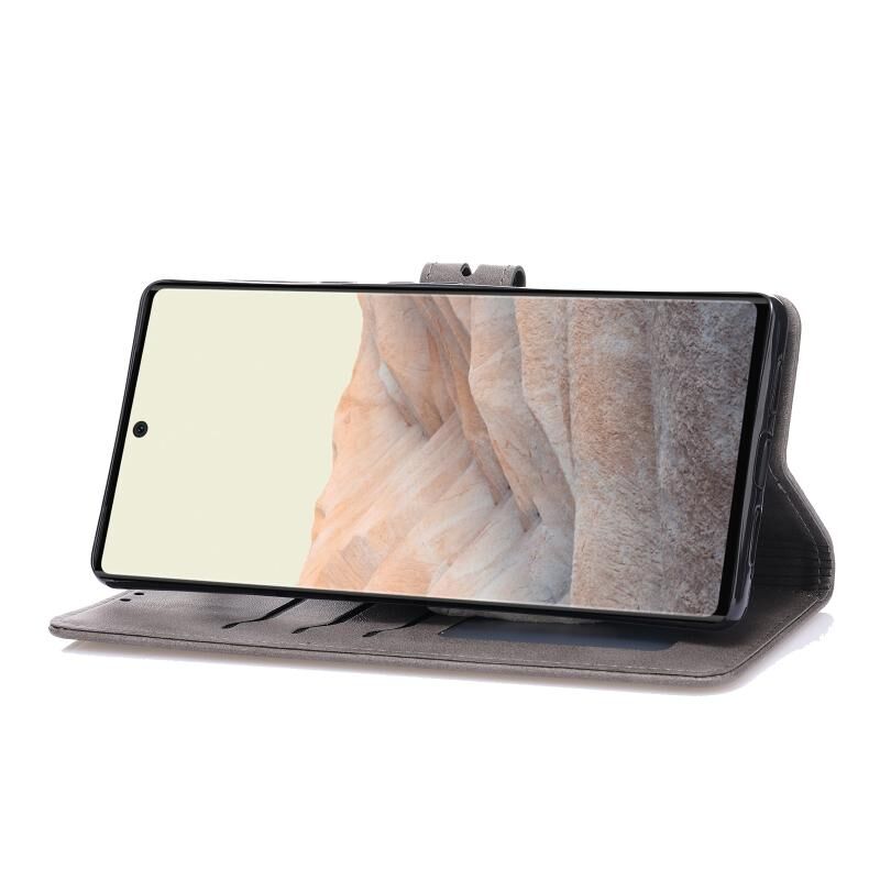 Για το Google Pixel 6 ανάγλυφο ευτυχισμένη γάτα μοτίβο οριζόντια Flip δερμάτινη θήκη με κάτοχο & υποδοχές για κάρτες & πορτοφόλι (γκρι)
