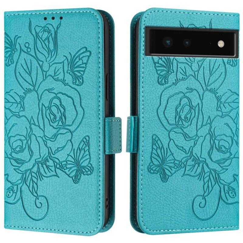 For Google Pixel 6 Embossed Rose RFID Anti-theft Leather Phone Case(Light Blue)