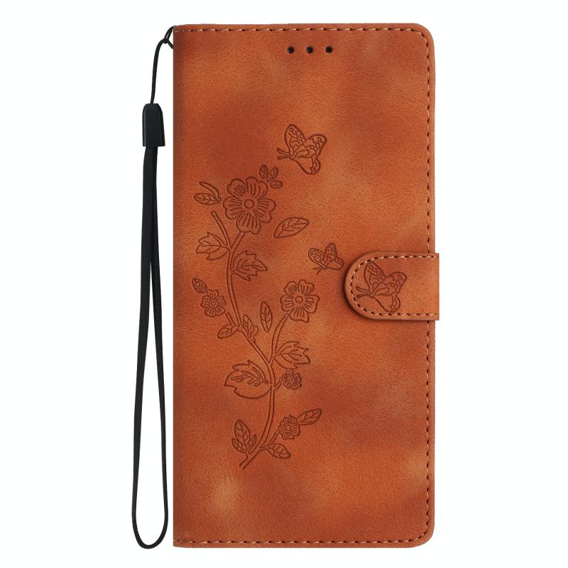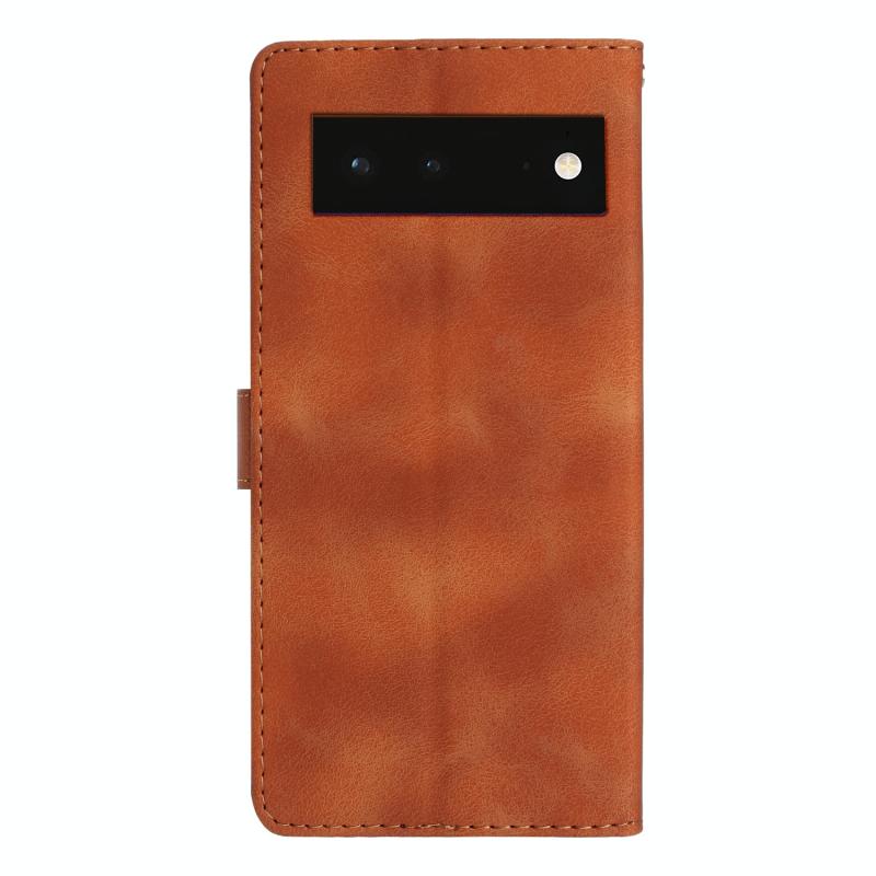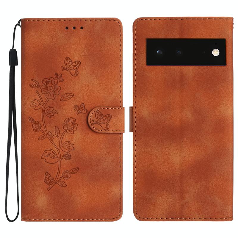 Θήκη τηλεφώνου δερμάτινη με ανάγλυφο σχέδιο λουλουδιών και πεταλούδας για Google Pixel 6 (Καφέ)