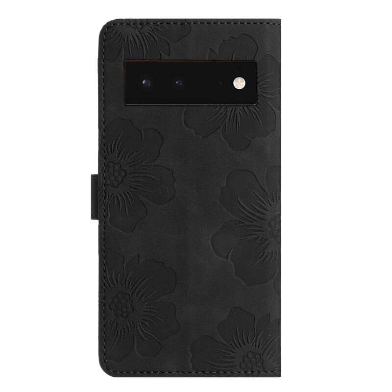 Για το Google Pixel 6 λουλούδι ανάγλυφο μοτίβο δερμάτινη θήκη τηλεφώνου (μαύρο)
