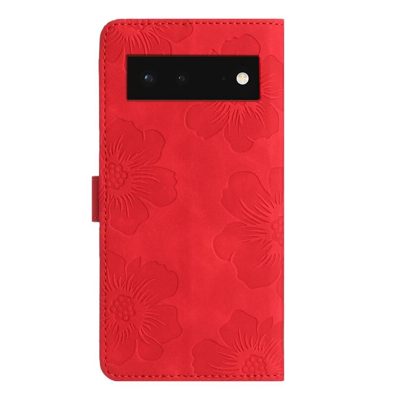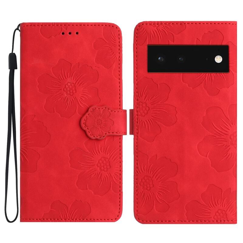 Για το Google Pixel 6 λουλούδι ανάγλυφο μοτίβο δερμάτινη θήκη τηλεφώνου (κόκκινο)