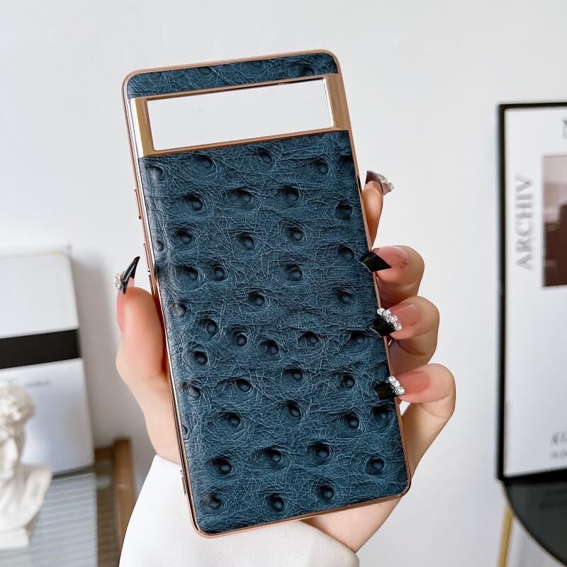 For Google Pixel 6 Genuine Leather Ostrich Texture Nano Electroplating Phone Case(Blue)