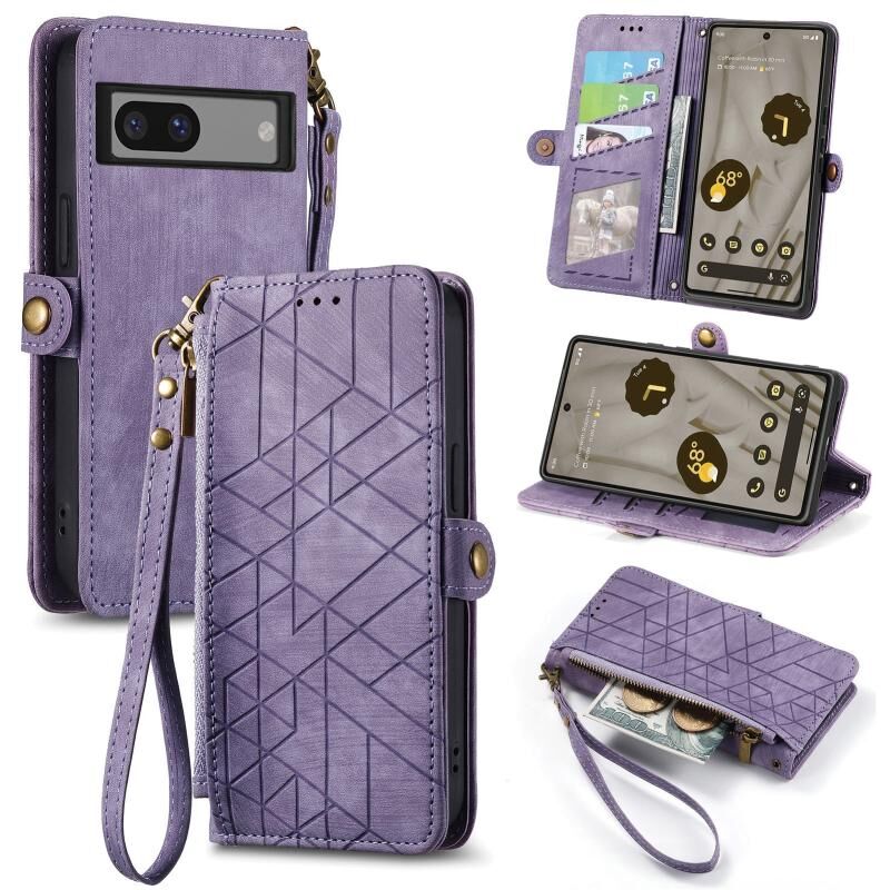 Για το Google Pixel 6 Γεωμετρικό φερμουάρ πορτοφόλι πλευρά πόρπη δερμάτινη θήκη τηλεφώνου (μωβ)