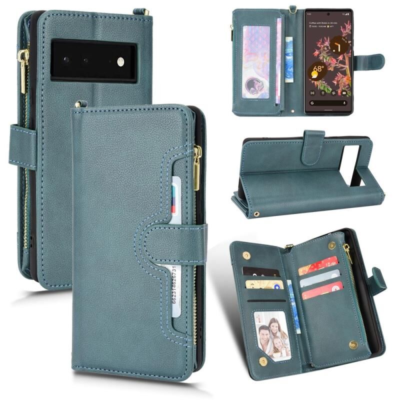Για το Google Pixel 6 Litchi Υφή φερμουάρ δερμάτινη θήκη τηλεφώνου (πράσινο)