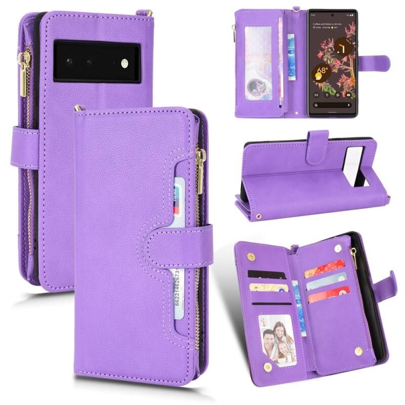 Για το Google Pixel 6 Litchi Υφή φερμουάρ δερμάτινη θήκη τηλεφώνου (μωβ)