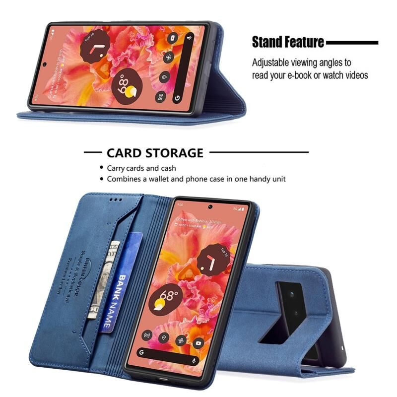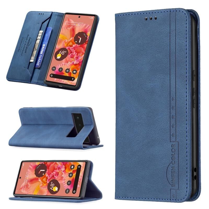 Για το Google Pixel 6 Μαγνητικό μπλοκάρισμα RFID Anti-Theft Δερμάτινη θήκη με θήκη & υποδοχές καρτών & πορτοφόλι (μπλε)