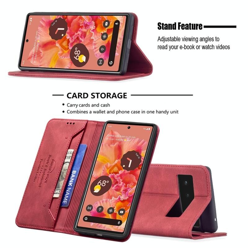 Για το Google Pixel 6 Μαγνητικό μπλοκάρισμα RFID Anti-Theft Δερμάτινη θήκη με θήκη & υποδοχές καρτών & πορτοφόλι (κόκκινο)