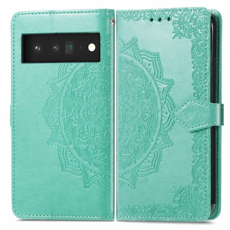 Για Google Pixel 6 Mandala ανάγλυφο μοτίβο οριζόντια Flip δερμάτινη θήκη με θήκη & υποδοχές για κάρτες & πορτοφόλι & κορδόνι (πράσινο)