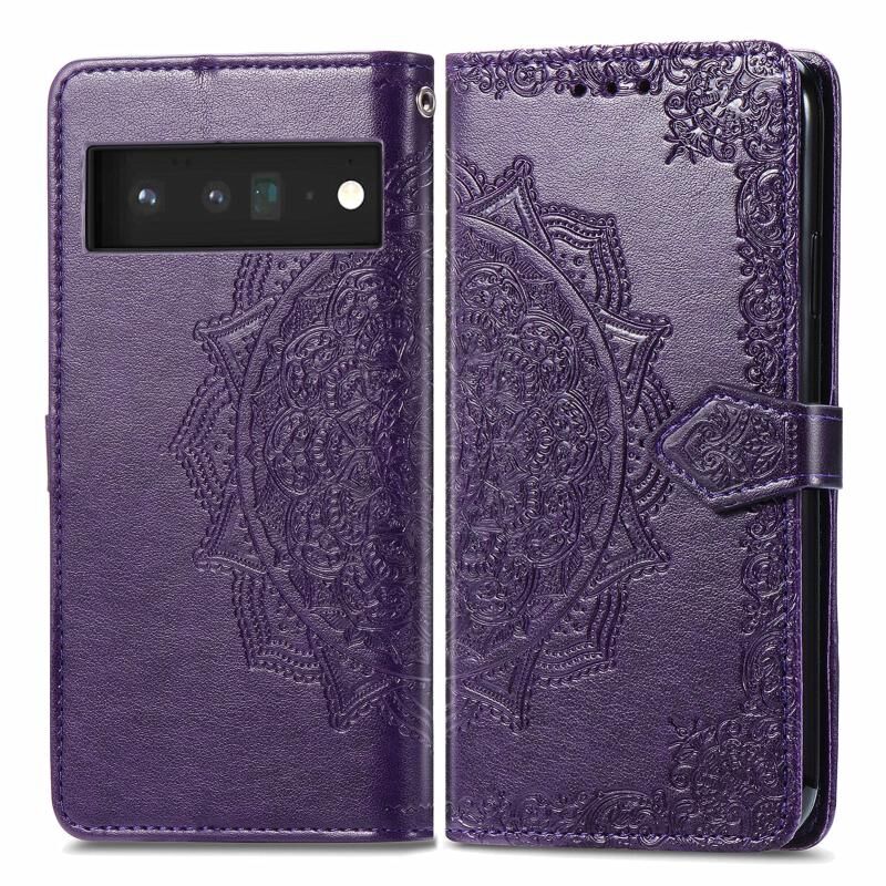 Για το Google Pixel 6 Mandala ανάγλυφο μοτίβο οριζόντια Flip δερμάτινη θήκη με θήκη & υποδοχές για κάρτες & πορτοφόλι & κορδόνι (μωβ)