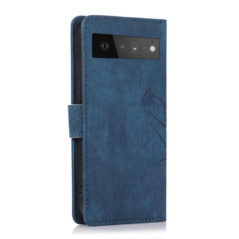 Θήκη τηλεφώνου από δέρμα με ανάγλυφο σχέδιο πεταλούδας ορχιδέας για Google Pixel 6 (Πράσινο)