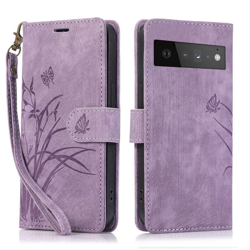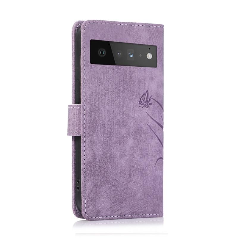 Θήκη τηλεφώνου από δέρμα με ανάγλυφο σχέδιο πεταλούδας ορχιδέας για Google Pixel 6 (Πράσινο)
